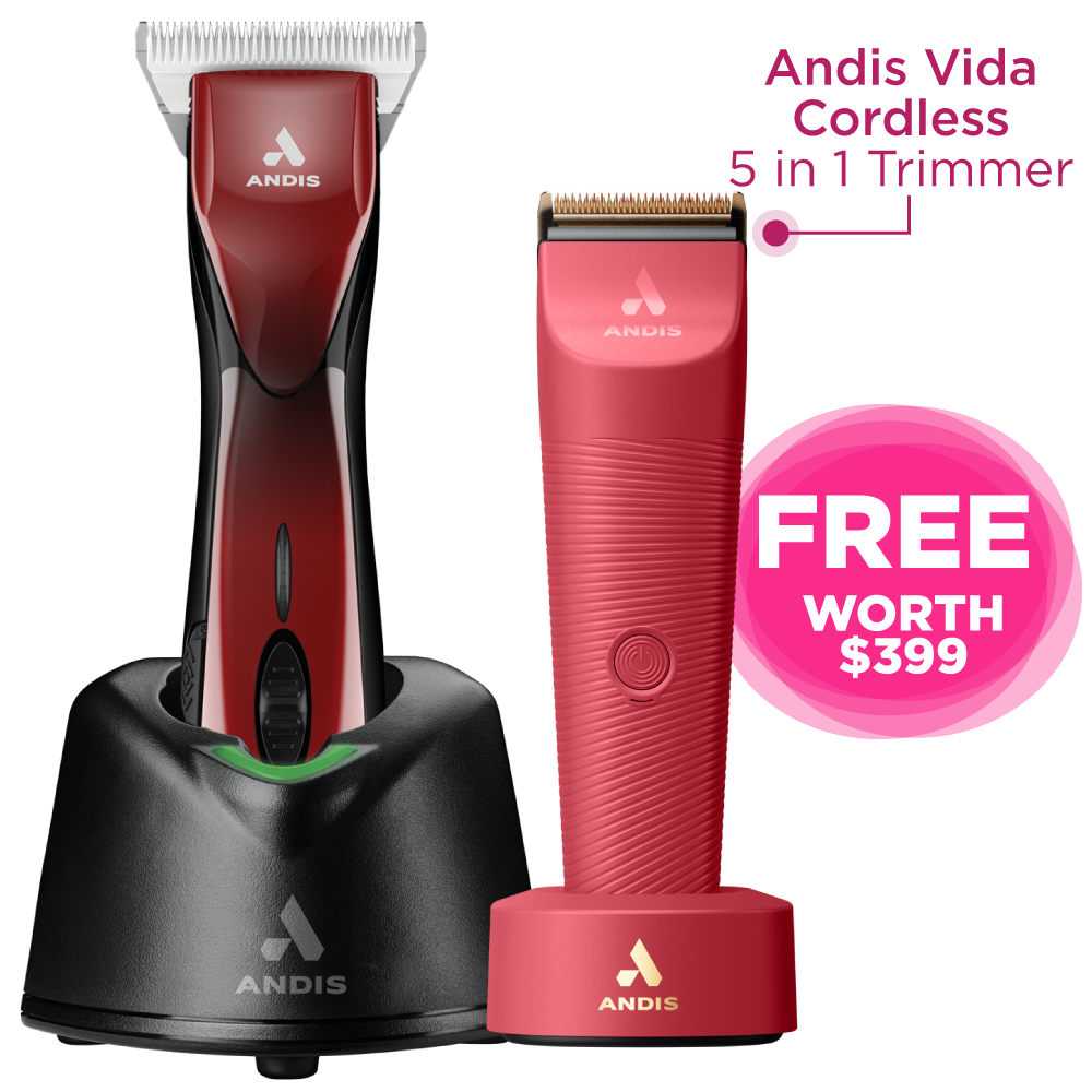 The Andis Pulse ZR II – Red Wide Blade clipper blends professional cordless power with a standout wide blade designed to boost grooming efficiency. This clipper includes two removable Lithium-ion batteries, each delivering up to 3 hours of runtime, with a fast 2-hour charge. Swap batteries on the go for uninterrupted grooming sessions. An integrated battery indicator light keeps you informed when it's time to recharge.