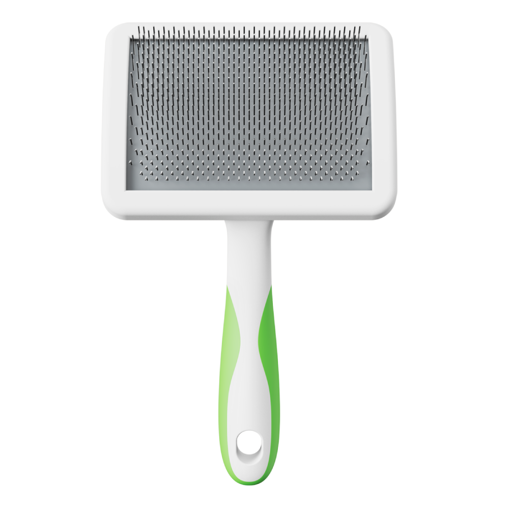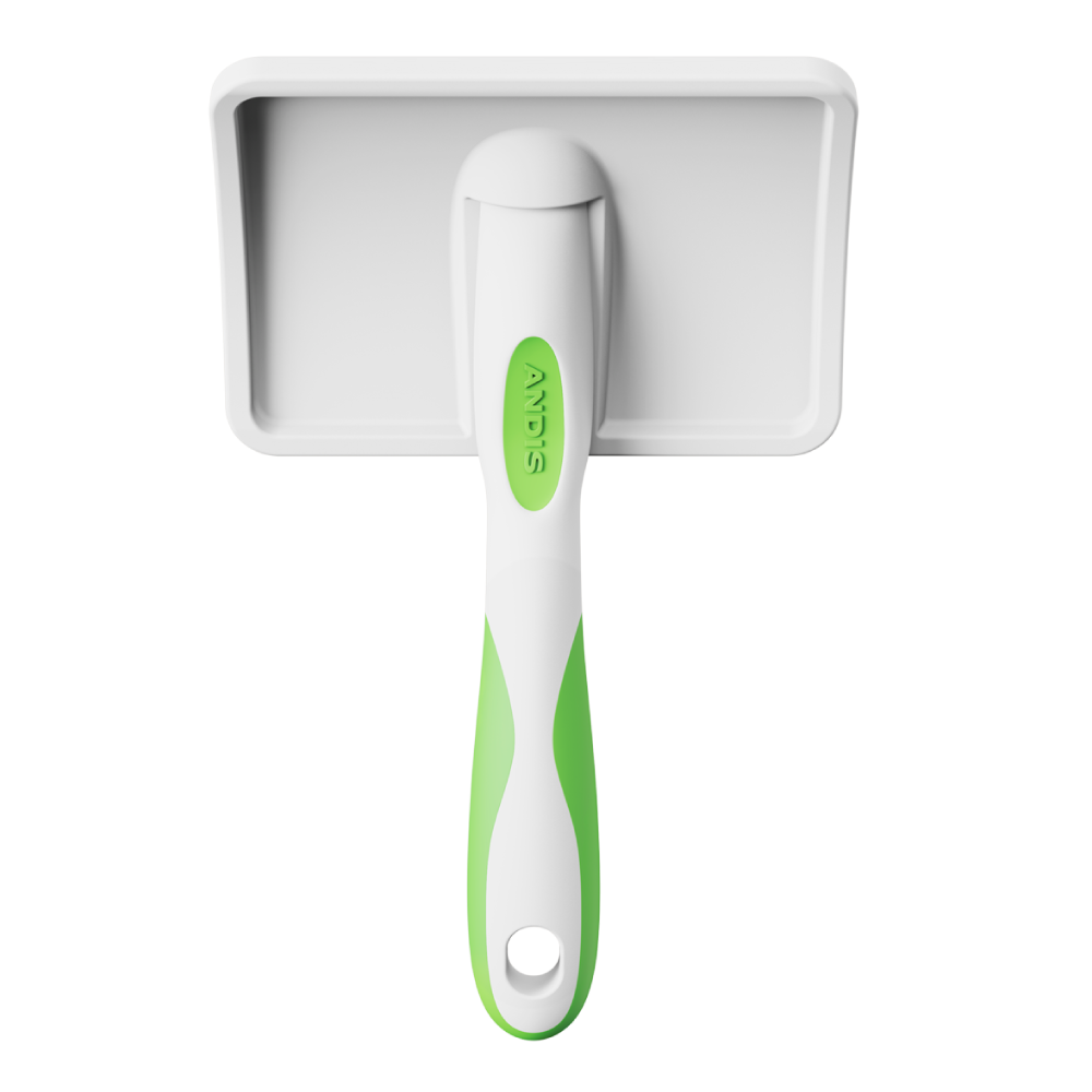 The new Andis Soft-Tooth Slicker Brush is soft and ergonomic, designed to be light and durable. It effortlessly glides through all coat types to remove dead hair from undercoats and topcoats, unravel tangles, and eliminate matting. The high-quality metal teeth promote hair health and leave the fur with a lustrous shine.