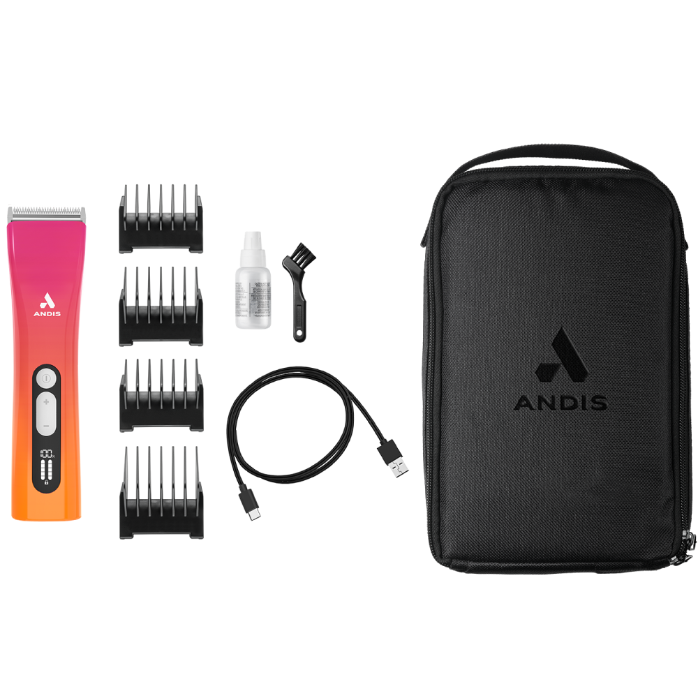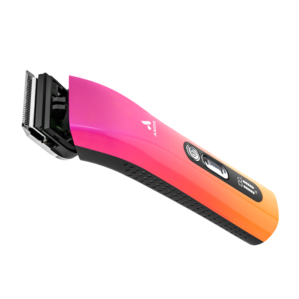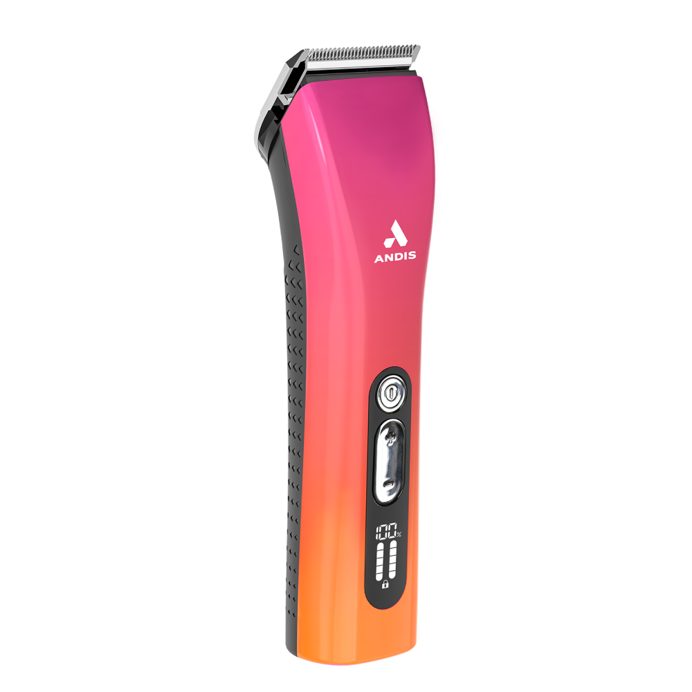 The new Andis ProClip Cord/Cordless 5-in-1 Trimmer Clipper Li - Sunset is a versatile, professional-grade grooming tool designed for precision detailing and light body clipping. Featuring a sleek, ergonomic design and the freedom of lithium-ion power, it is ideal for trimming faces, paws, and sensitive areas on dogs, cats, and horses.