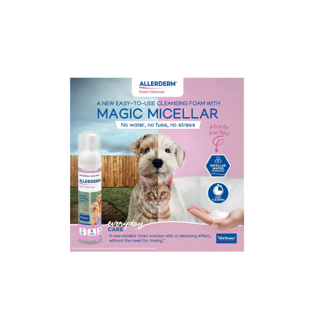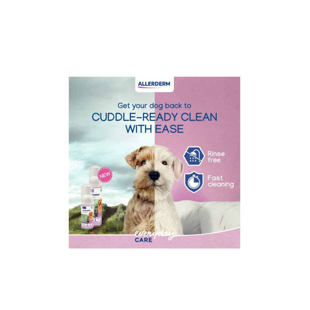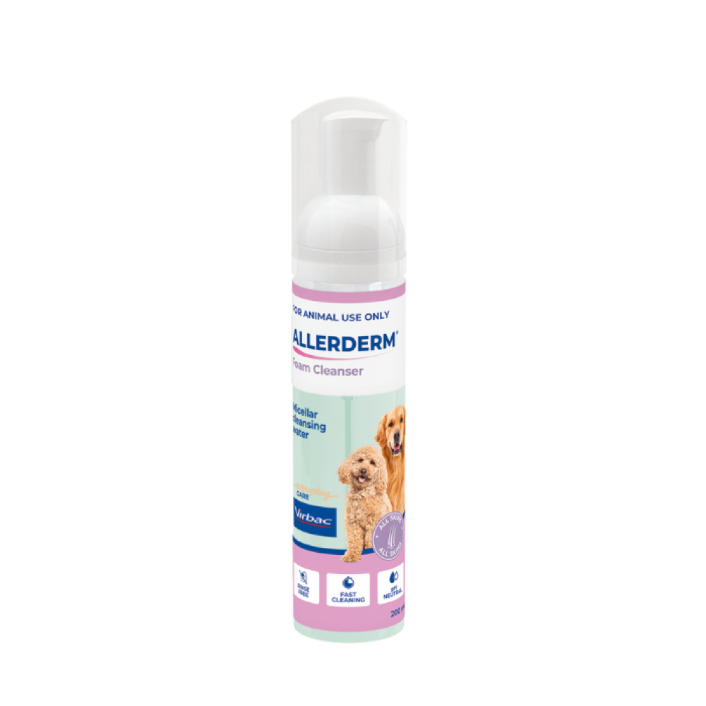 Virbac Allerderm Foam Cleanser is a revolutionary, rinse-free micellar water solution designed to keep pets fresh and clean without the stress of a traditional bath. Utilizing advanced micellar technology, it effectively lifts dirt and neutralizes odors while remaining gentle enough for pets with sensitive skin.
