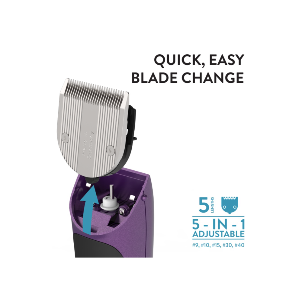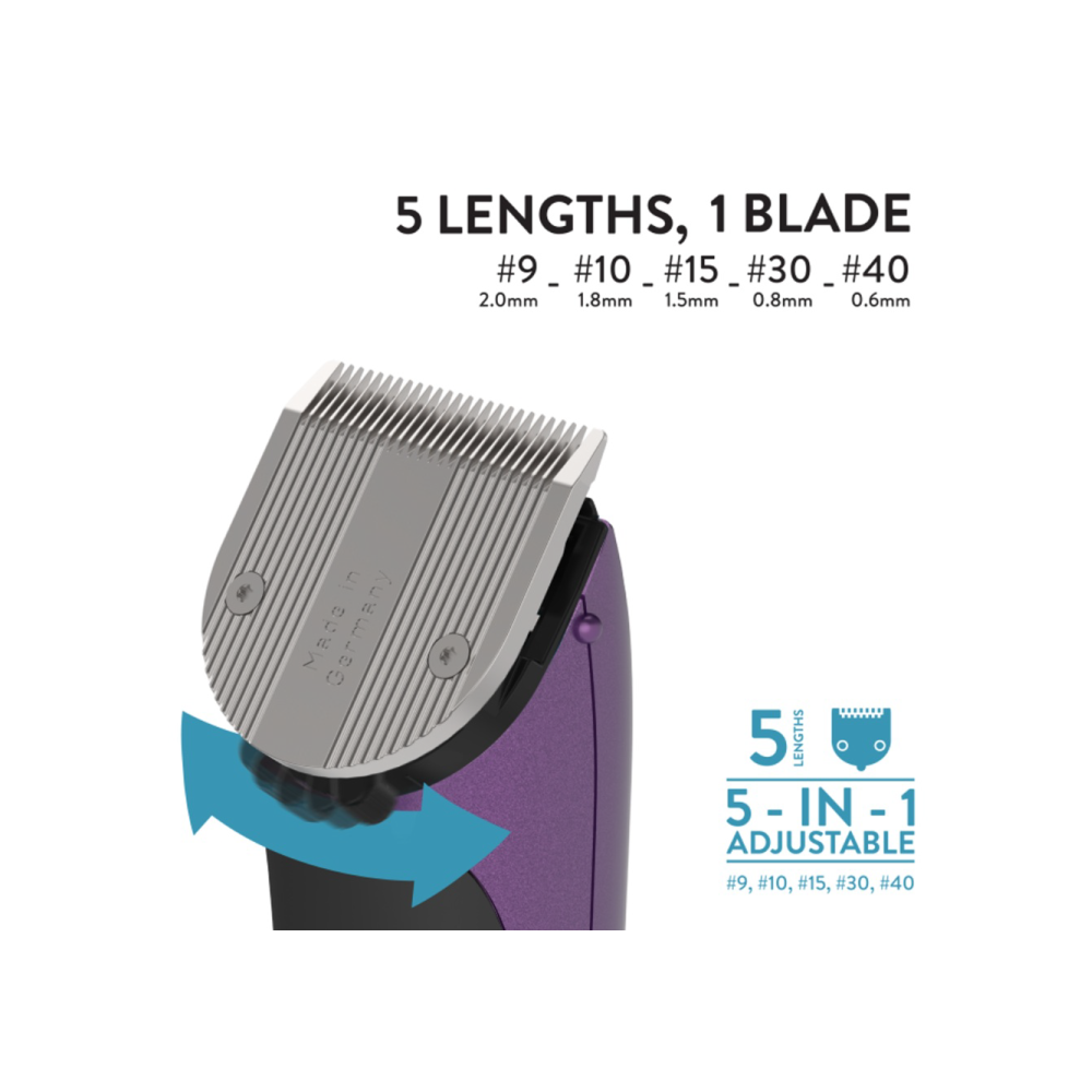The new Wahl Bravura Lithium Cordless 5 in 1 in Purple is a lightweight cord/cordless trimmer. This model sits between a mini trimmer and full size clipper, called a midi.