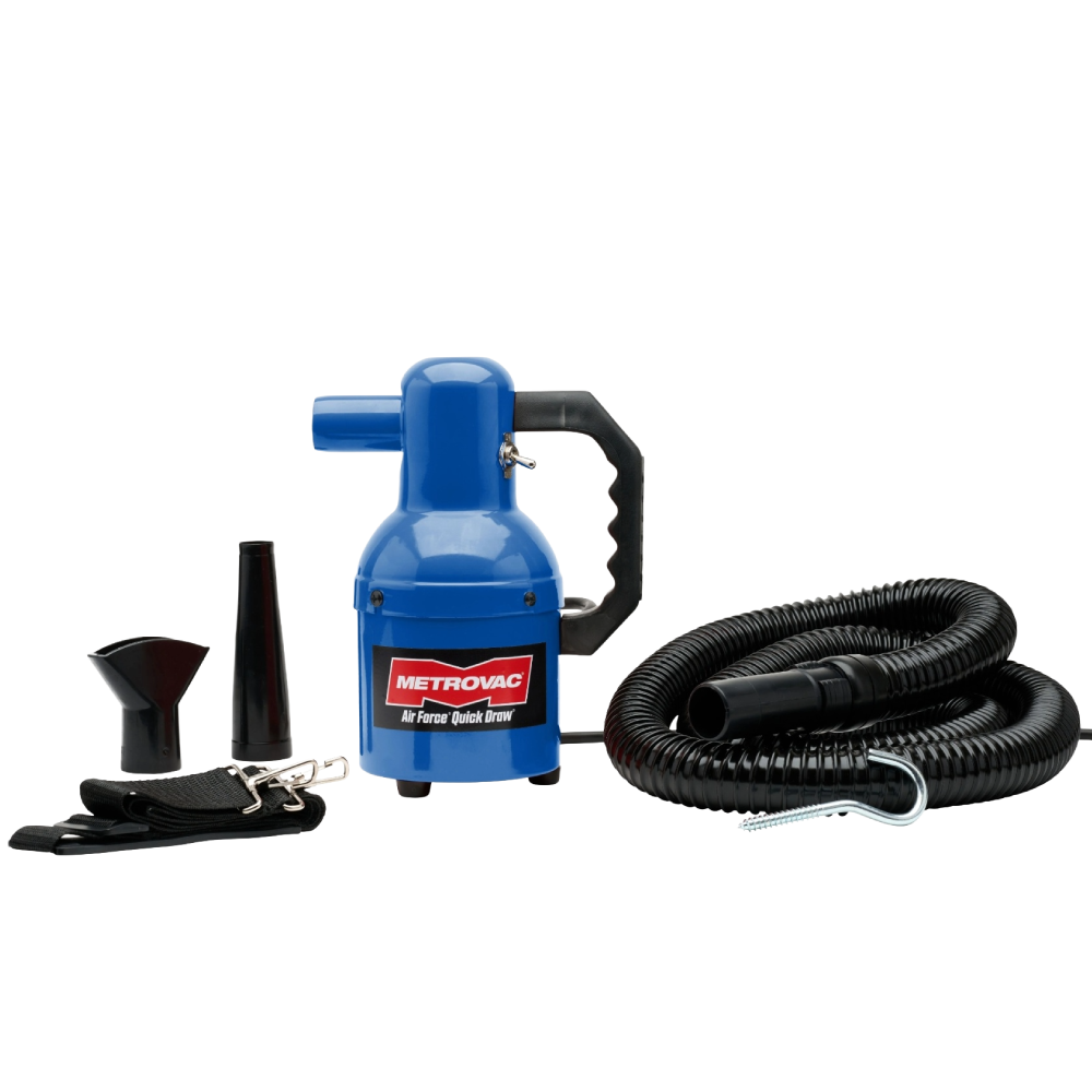 The MetroVac Air Force Quick Draw Dryer is a professional-grade, high-velocity handheld dryer designed to cut drying time by up to 75%. This lightweight "powerhouse" provides a safe, heat-free alternative to traditional hair dryers, protecting the pet’s skin and coat while delivering incredible performance.